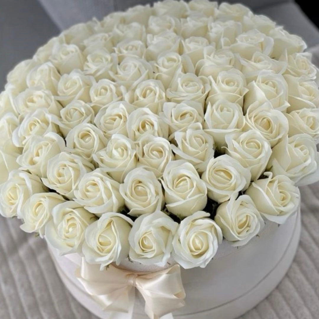 50 Ivory Roses is the embodiment of sophistication and grace. Presented in a luxurious round hat box, these creamy blooms create a serene and romantic statement. Perfect for weddings, anniversaries, milestone celebrations, or any occasion that calls for timeless elegance.